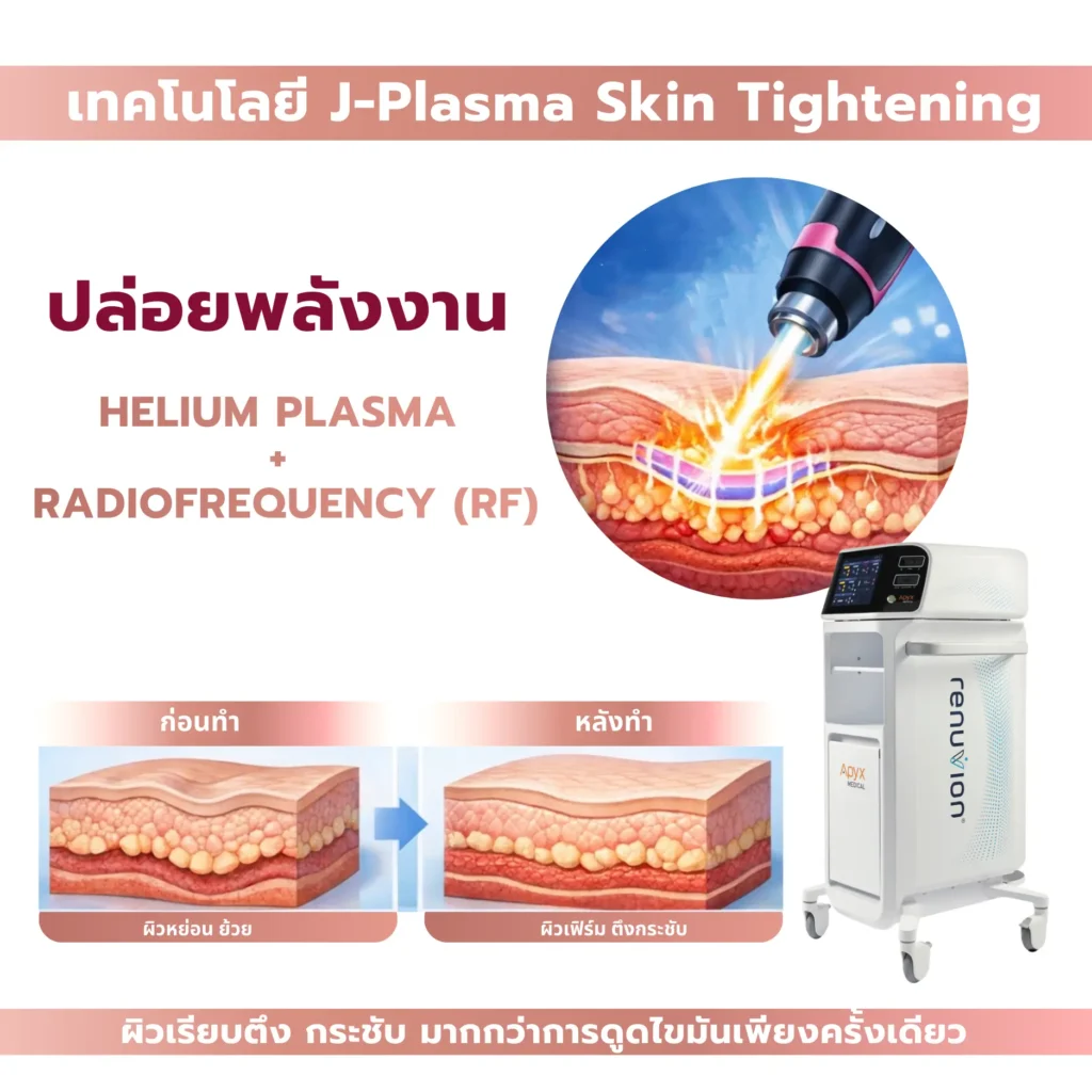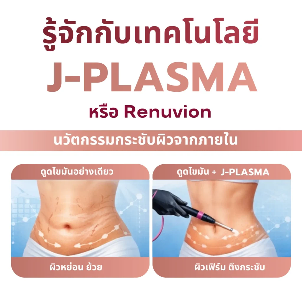 J-Plasma หรือที่รู้จักในชื่อ Renuvion คือเทคโนโลยีทางการแพทย์สำหรับ กระชับผิวจากภายใน (Skin Tightening Technology) ที่ได้รับความนิยมในคลินิกความงาม โดยเฉพาะการใช้ร่วมกับการดูดไขมัน (Liposuction) เพื่อช่วยแก้ปัญหา ผิวหย่อน ผิวย้วย หรือผิวเป็นคลื่นหลังดูดไขมัน